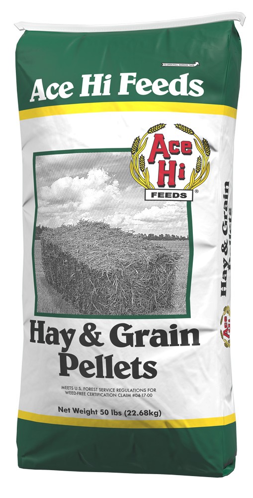 Our 3/8 inch, alfalfa hay and grain based pellets are formulated with added molasses, vitamins, and minerals. Ace Hi Alfalfa Hay & Grain Pellets are a good feeding option for older horses, horses with bad teeth who have trouble chewing, or horses who are sensitive to breathing in dust from long-stem hay.
